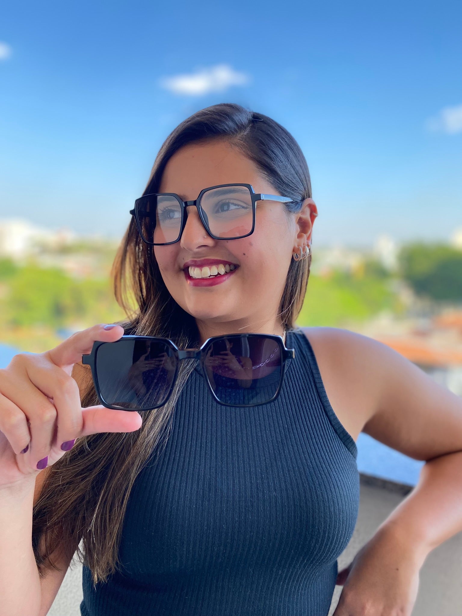 O nosso modelo ON Emi é super estiloso e é para aquelas que buscam uma armação moderna e com uma proposta de óculos de grau grande. Esse óculos harmoniza muito bem com rostos médios e grandes.