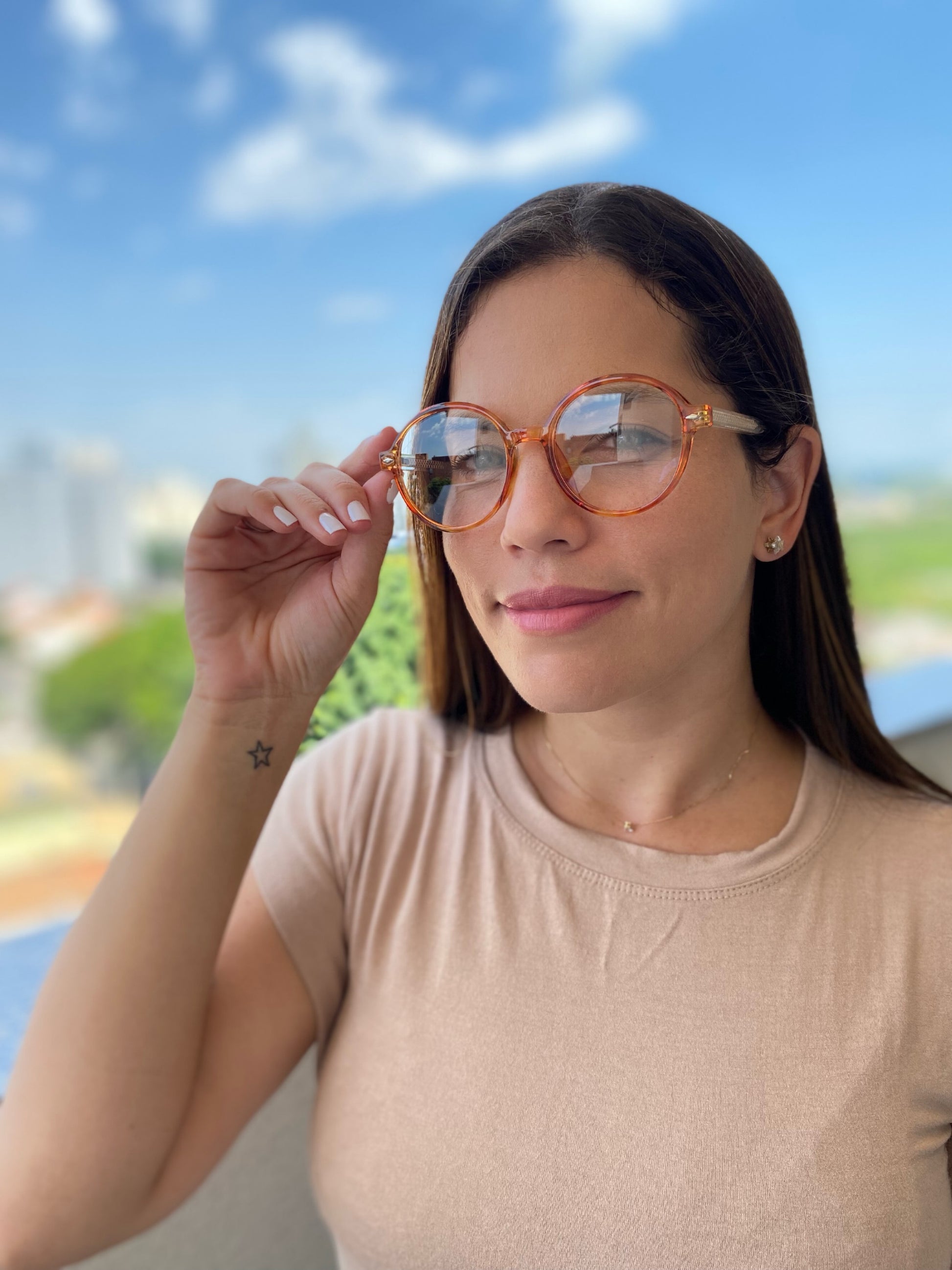 O modelo ON Julia tem um design super diferente. Este formato é um clássico desde os anos 50, que vem se atualizando e se mantendo atemporal. Ele se adapta a diferentes a formatos de rostos quadrados e diamantes.
